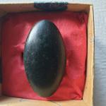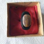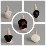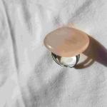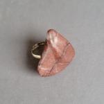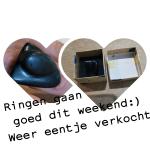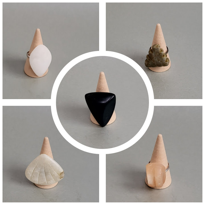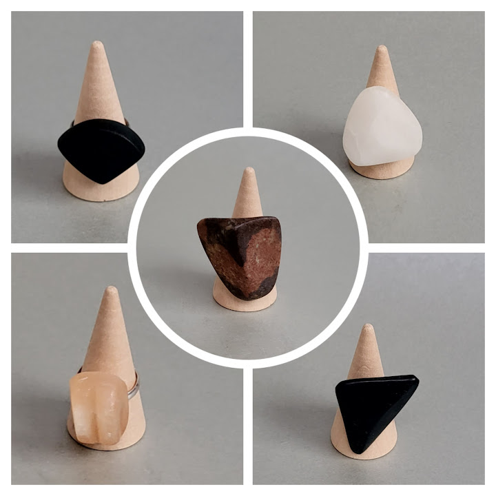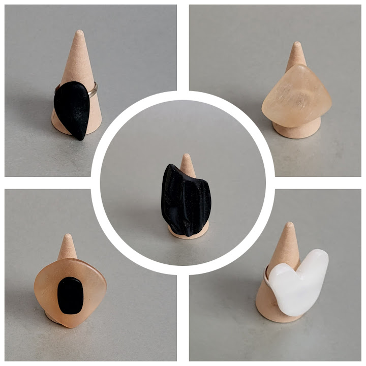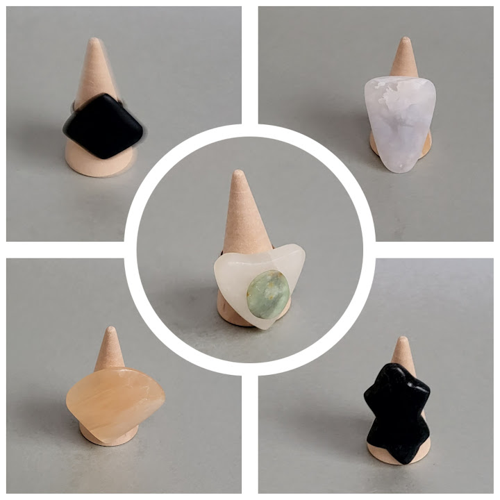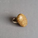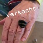 Ringen met epoxy goudfolie en speksteen; epoxy dennenappel en speksteen